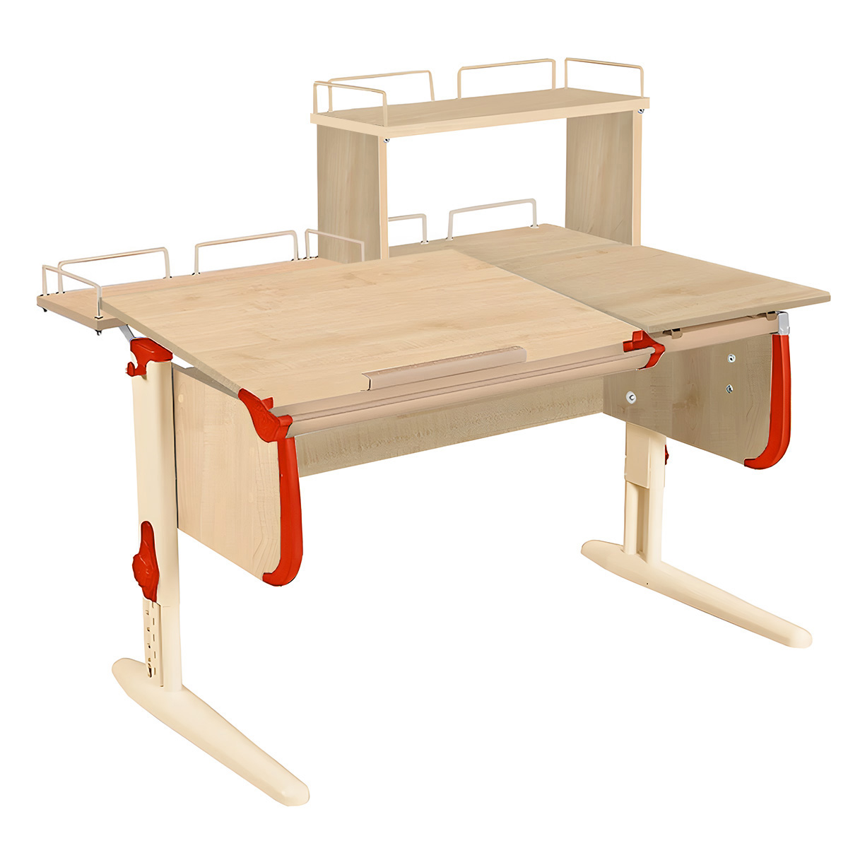 Парта Дэми СУТ-25-01Д1 120 см раздельная с задней приставкой и надстройкой клен/красный/белый каркас