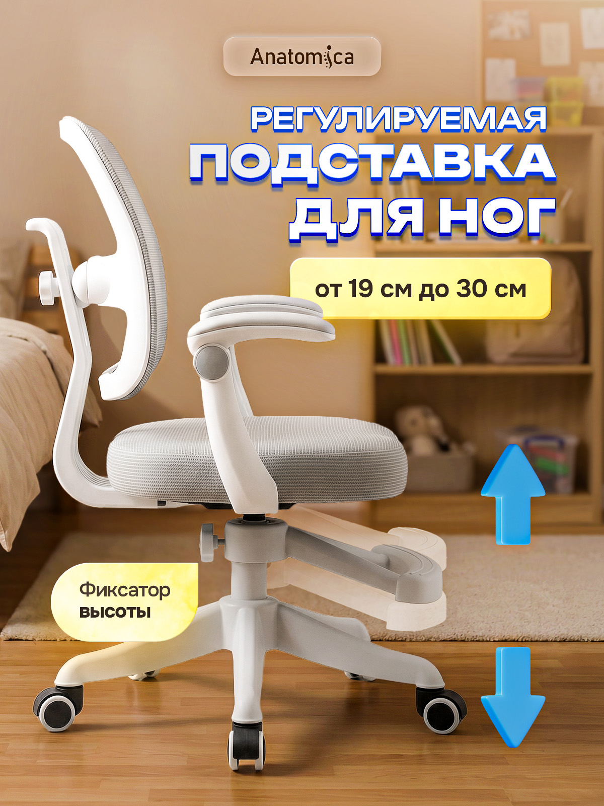 Еще одной важной особенностью Anatomica Kinder является подставка для ног из прочного пластика, которая регулируется по высоте.